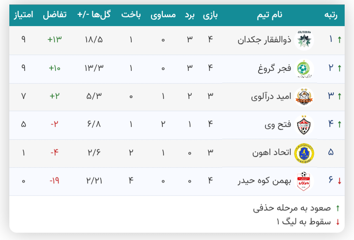فجر گروغ با این برد، سومین پیروزی خود را کسب کرد و اکنون با ۹ امتیاز و تفاضل کمتر نسبت به ذوالفقار جکدان در رده دوم جدول ایستاده است.