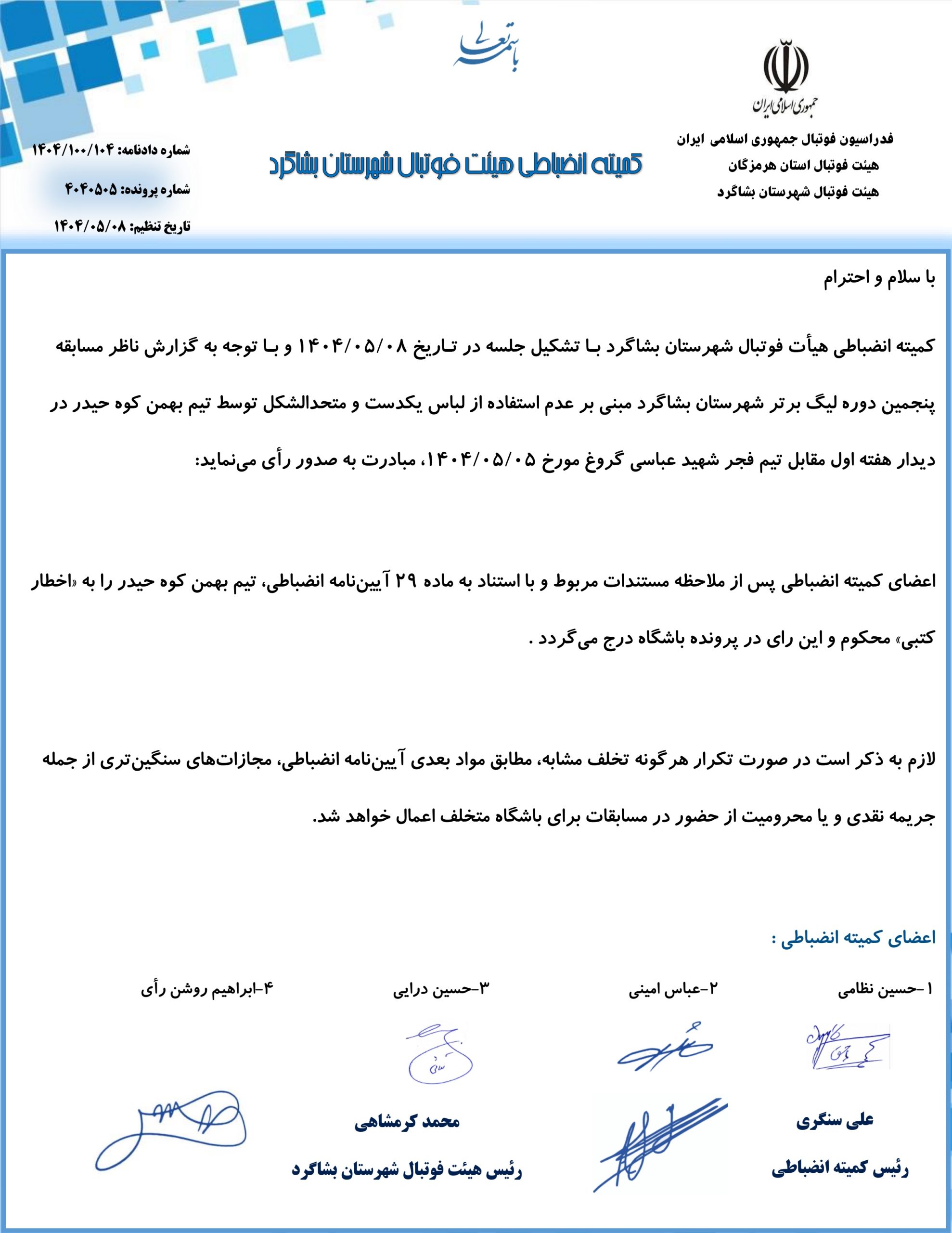بازی تیمهای بهمن کوه حیدر- فجر گروغ